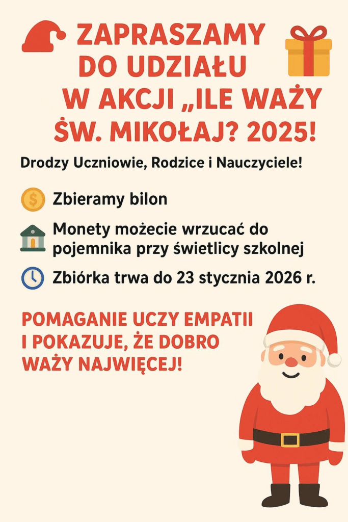 Zapraszamy do udziału w akcji „Ile waży Św. Mikołaj?” 2025! ![]()