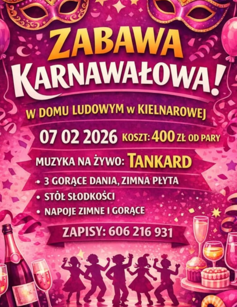 7 lutego 2026 r. Czeka na Was wspaniała muzyka, doborowe towarzystwo oraz mnóstwo dobrej zabawy w karnawałowym klimacie! ![]()