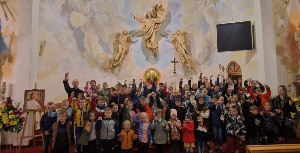 i pojednania na świecie. Akcję tę organizuje Papieskie Stowarzyszenie „Pomoc Kościołowi w Potrzebie”, a nasi uczniowie już kolejny rok aktywnie wzięli w niej udział. Otrzymaliśmy również Certyfikat potwierdzający modlitwę, który został przekazany 18 października 2023 r. w kościele parafialnym w Kielnarowej.