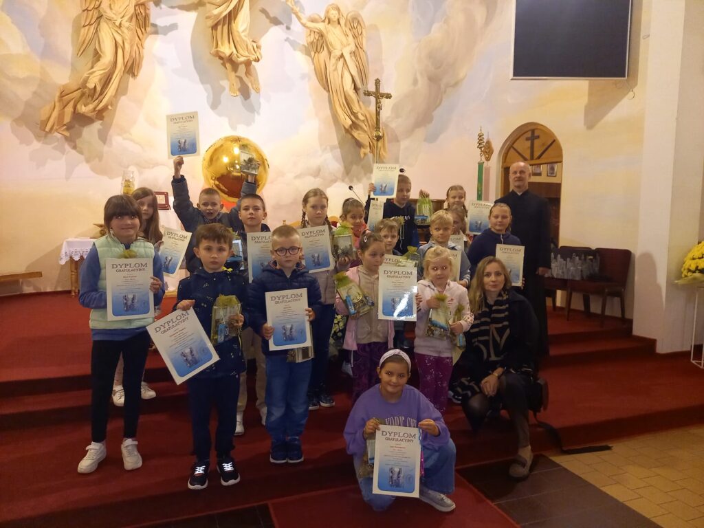 Ważnym wydarzeniem w październiku był finał konkursu pod hasłem „Kreatywny różaniec drogą do modlitwy”. Uczniowie, wraz z całymi rodzinami, włączyli się do artystycznego działania. Powstała wystawa z kolorowych różańców, początkowo w szkole, następnie w kościele. Wszyscy mogli podziwiać artystyczny zmysł i wysiłek rodzin. Uczestnicy zostali nagrodzeni w dniu 30 października. Z wielką radością możemy pogratulować rodzicom, zaangażowanym w rozwój duchowy i artystyczny oraz integrację przy wspólnym działaniu!
