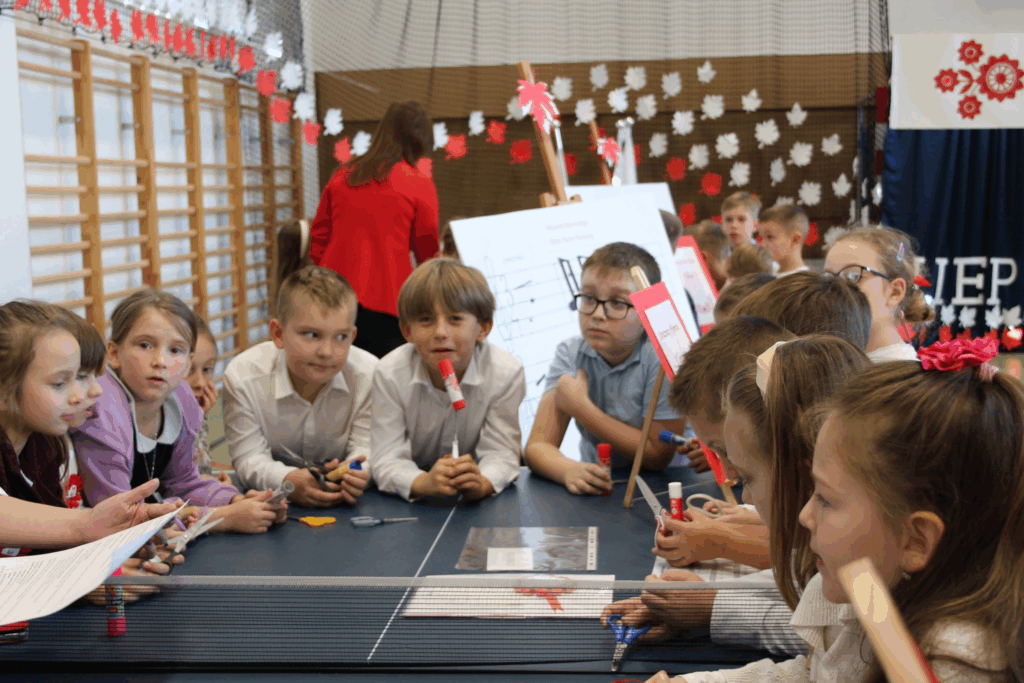 W tym roku obchody 11 listopada miały wyjątkowy charakter — zamiast tradycyjnej akademii odbyła się… „Gra o Niepodległą”!Każda klasa otrzymała zadania powierzone przez Strażniczkę Niepodległej. Losy wolnej Polski znalazły się w rękach uczniów — musieli wykazać się wiedzą, sprytem, wieloma umiejętnościami i prawdziwą współpracą zespołową ![]()