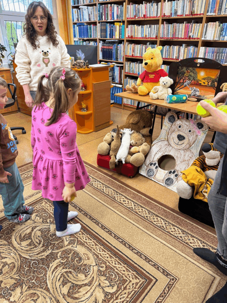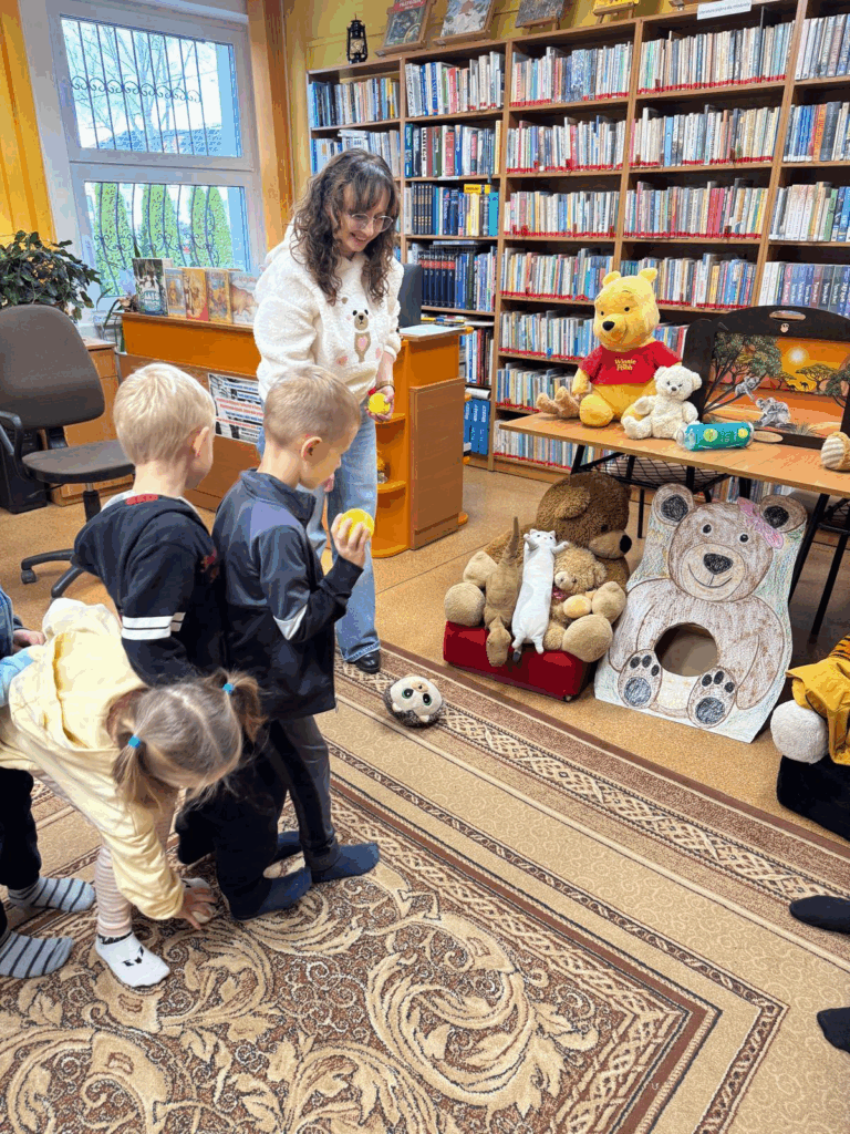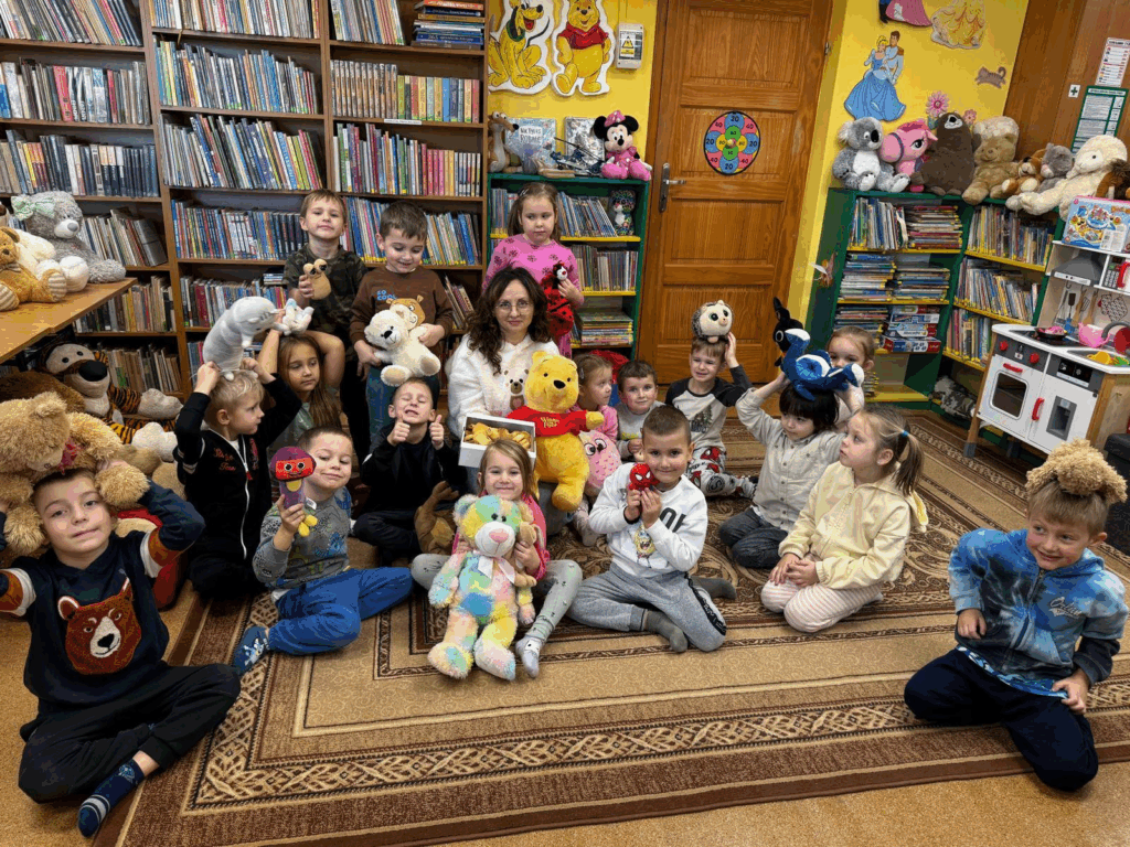 Dzieci z grupy przedszkolnej odwiedziły Bibliotekę Publiczną w Kielnarowej. Z okazji zbliżającego się Dnia Pluszowego Misia