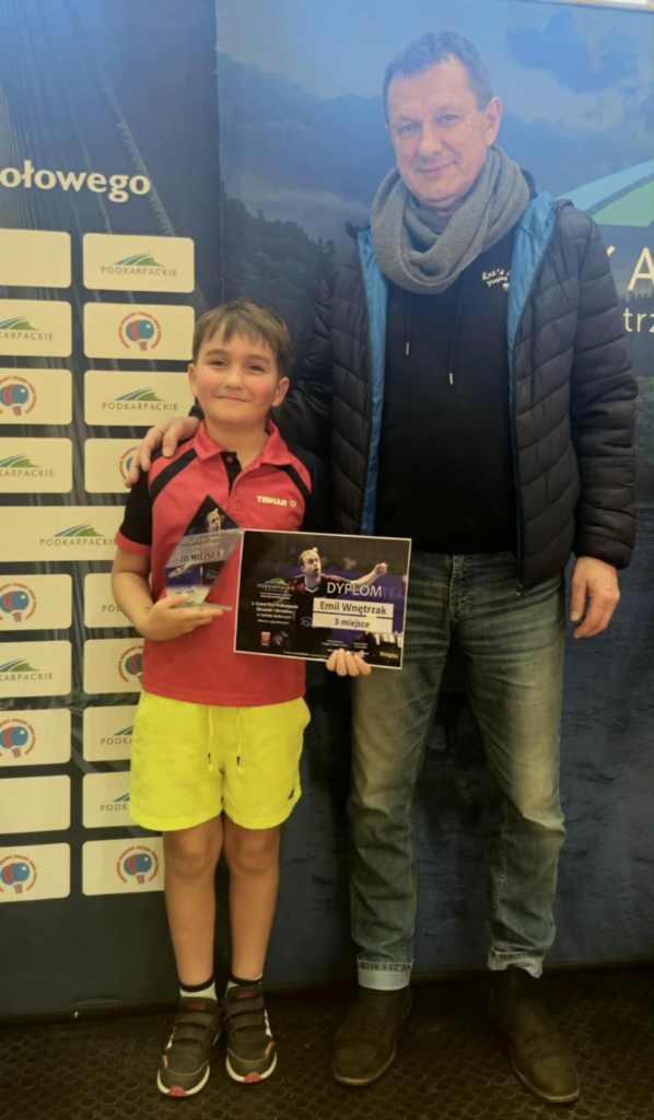 Wielkie brawa dla Emila Wnętrzaka, który zajął po raz drugi III miejsce w województwie w II Grand Prix SKRZATÓW, podczas Turnieju Tenisa Stołowego w Błażowej. Na zdjęciu Emil z trenerem Januszem Bachtą. Przy okazji zachęcamy wszystkich uczniów do spróbowania swoich sił w tej ciekawej dyscyplinie sportu. Treningi odbywają się 3 razy w tygodniu: w poniedziałki, środy i piątki, na sali gimnastycznej w naszej szkole.