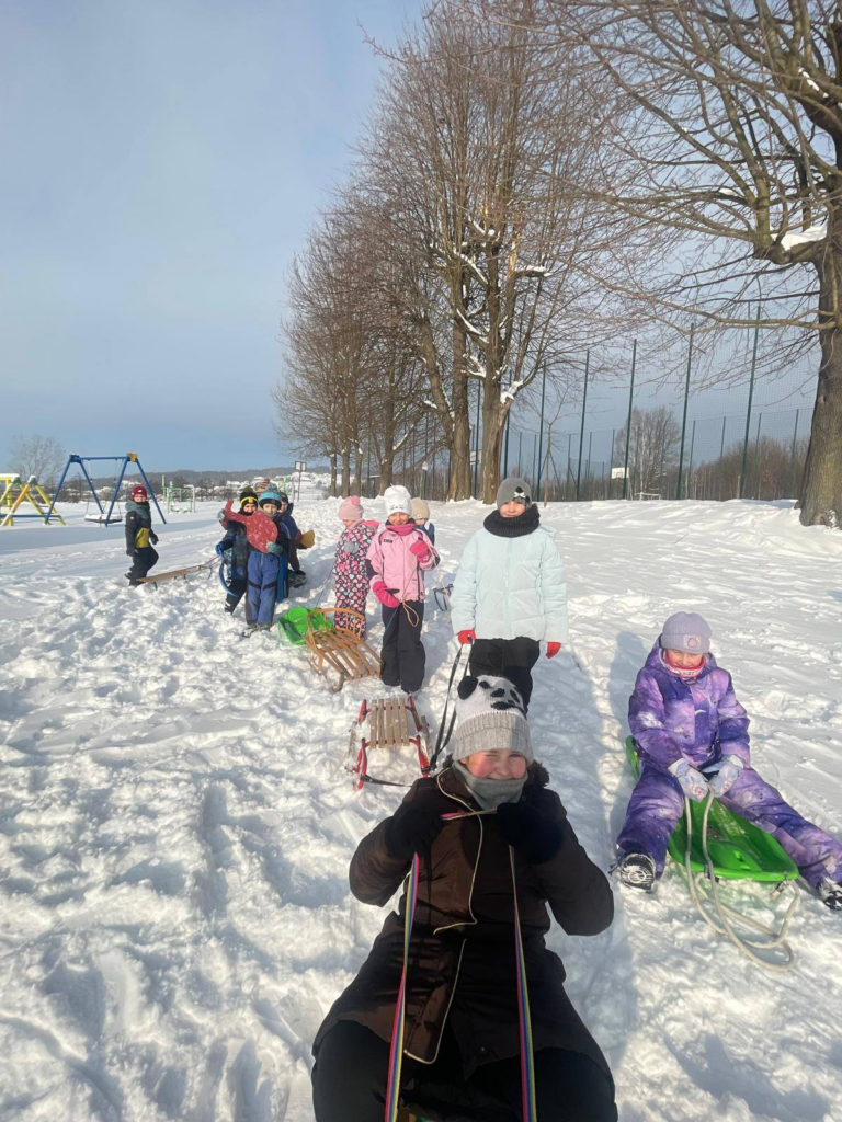 Pierwszakom też dzisiaj zmarzły noski😶‍🌫️😊! Mimo mrozu, uśmiechy nie schodziły z buzi 🥰. W piątek 9 stycznia, pierwszaki korzystały z uroków zimy jeżdżąc na saneczkach.