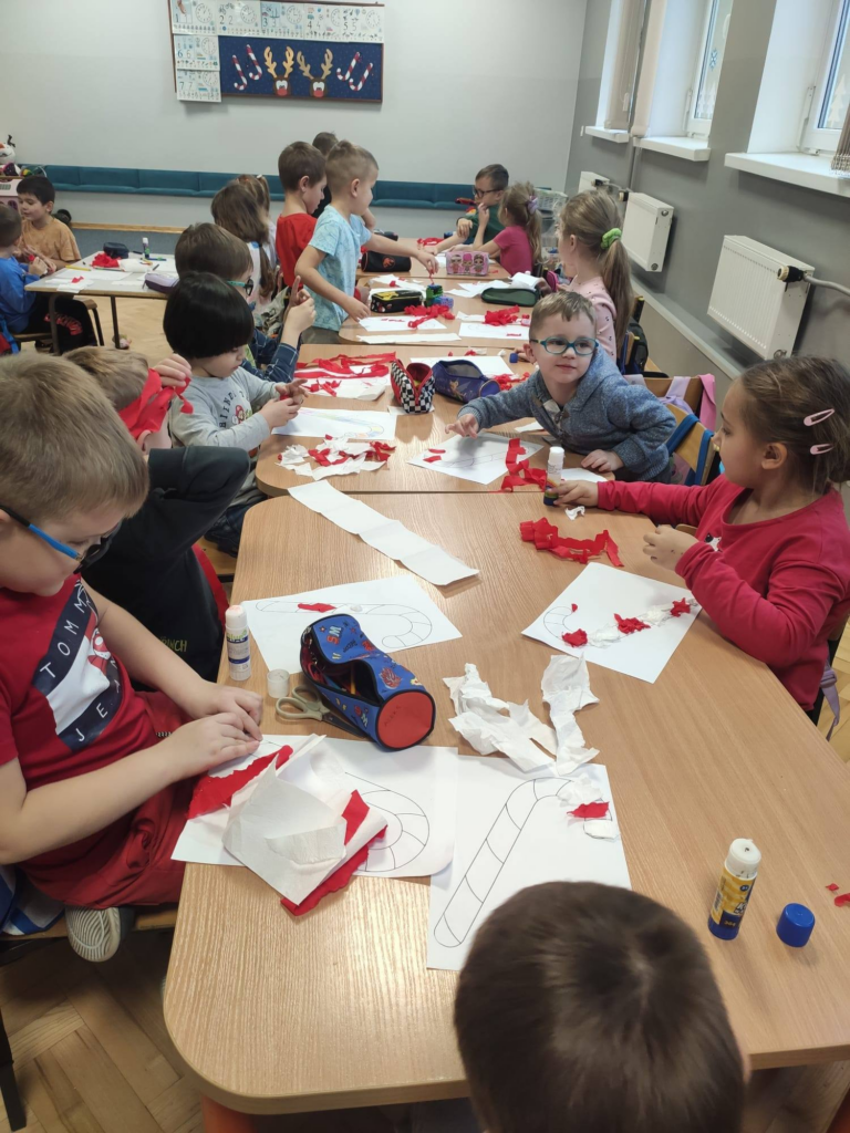 W grudniu❄️, w świetlicy nastąpił magiczny czas oczekiwania. Dzieci uczestniczyły w wielu kreatywnych aktywnościach plastycznych – wycinały, ozdabiały tworząc świąteczne prace. Z zaciekawieniem słuchały świątecznych opowiadań, wprowadzających je w magiczny, Bożonarodzeniowy nastrój. Wspólnie z pomocą nauczyciela, napisały list do Mikołaja, który został wysłany w własnoręcznie ozdobionej kopercie. Był to czas życzliwości, i składania świątecznych życzeń, nauki oraz śpiewu kolęd, a także radosnych zabaw grupowych, które pomogły jeszcze bardziej zjednoczyć dzieci i wzmocnić więzi między nimi.☃️