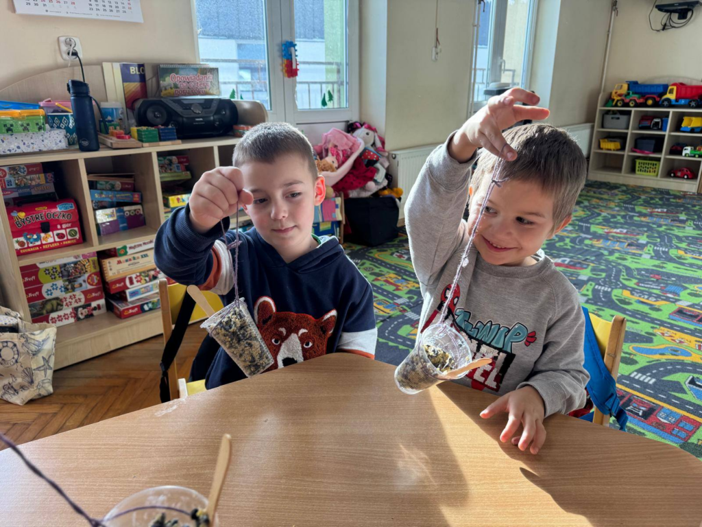 Przedszkolaki jak co roku zadbały o ptasich przyjaciół: przygotowały małe karmniki i pamiętają podczas zimy, że warto pomagać zwierzętom przetrwać mroźny czas