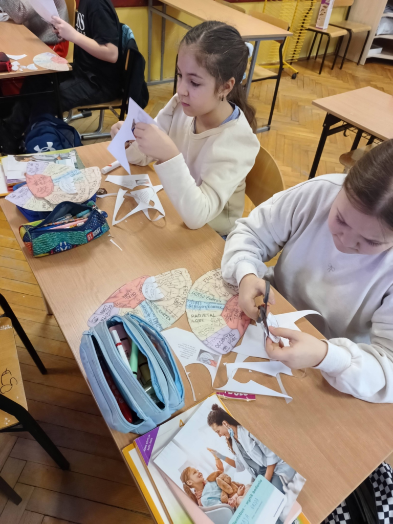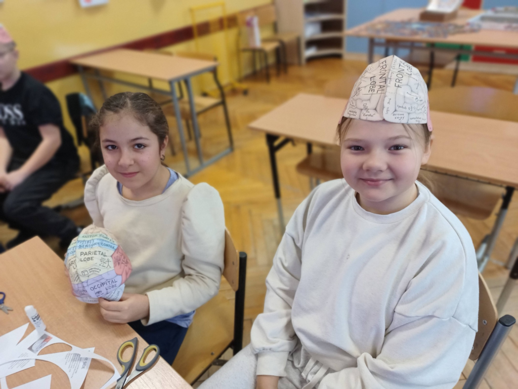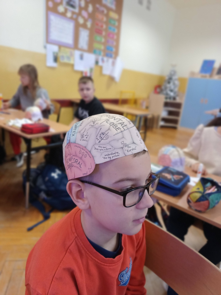 Aby lepiej zrozumieć funkcje kory mózgowej, uczniowie wykonali kreatywny model – „czapeczkę mózgu”.