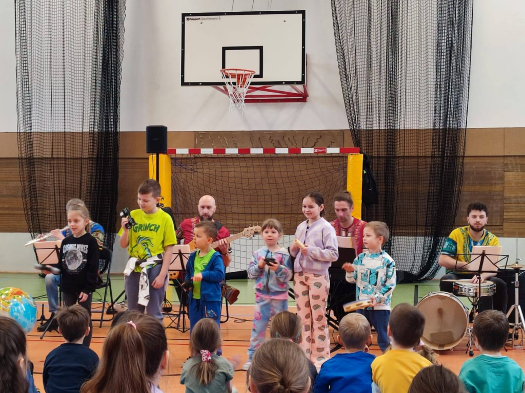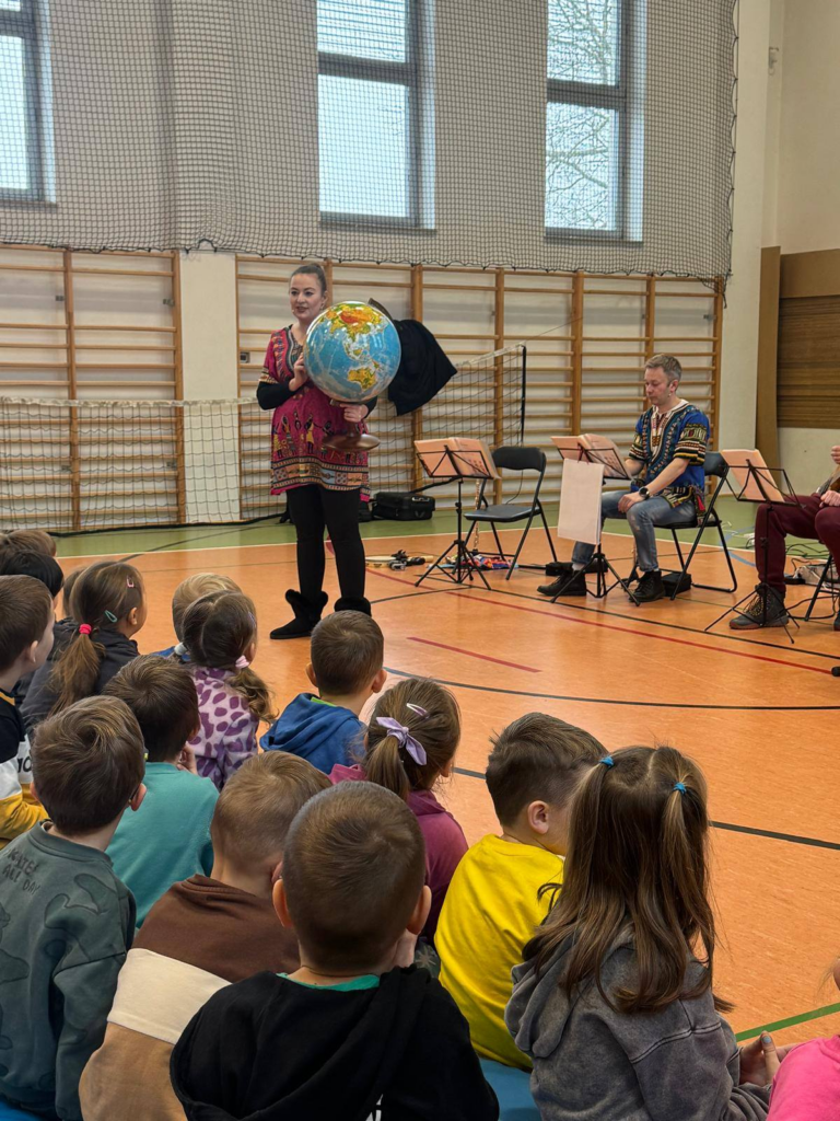 Muzyczna Filharmonia tym razem zaprosiła dzieci w muzyczną podróż do ciepłych krajów: przez Egipt i RPA do Jamajki. Wybrzmiały też rytmy z Ameryki Południowej – karnawału z Rio. Mieliśmy okazję wspólnie pośpiewać, obejrzeć ciekawe stroje i poznać kolejne instrumenty. Tym razem swoich sił w graniu spróbowały też dzieci. Spotkanie z muzyką było udane i już czekamy na kolejny koncert wiosną.