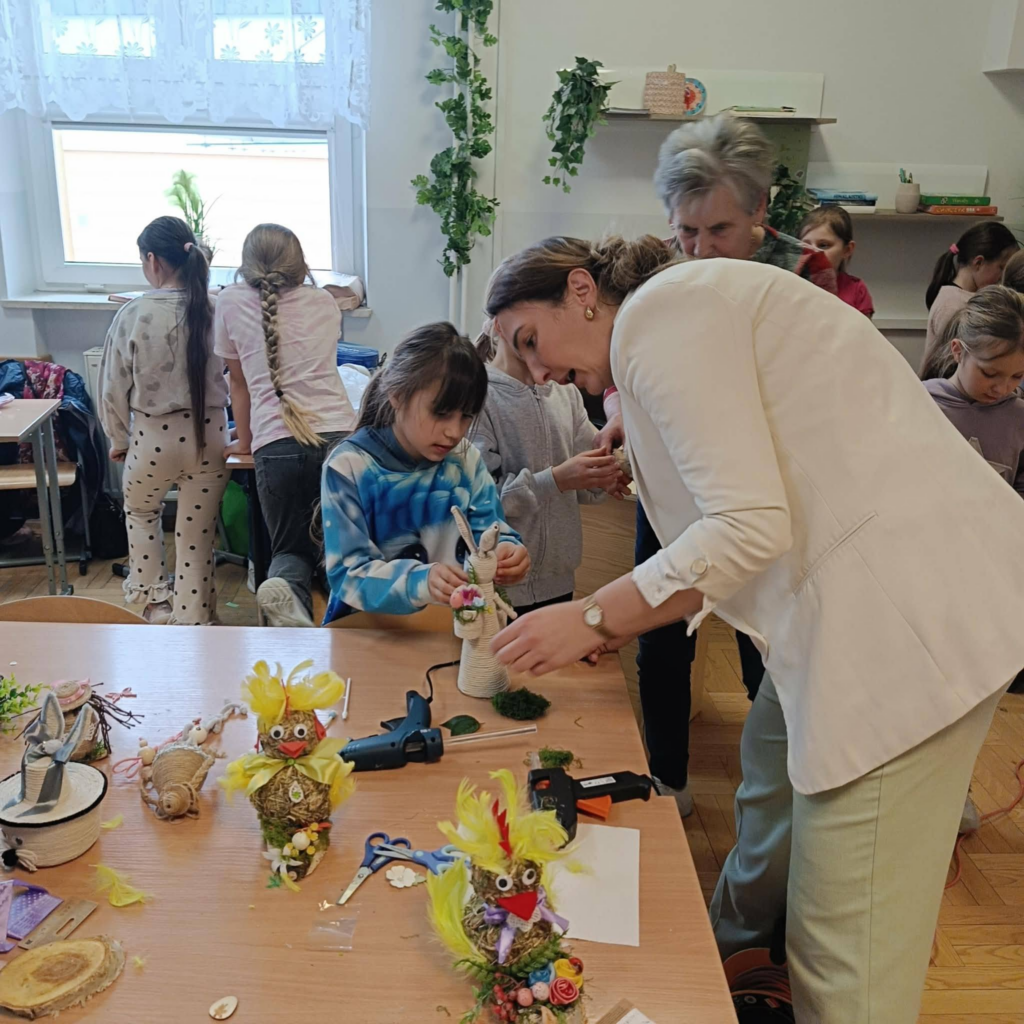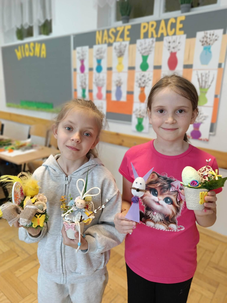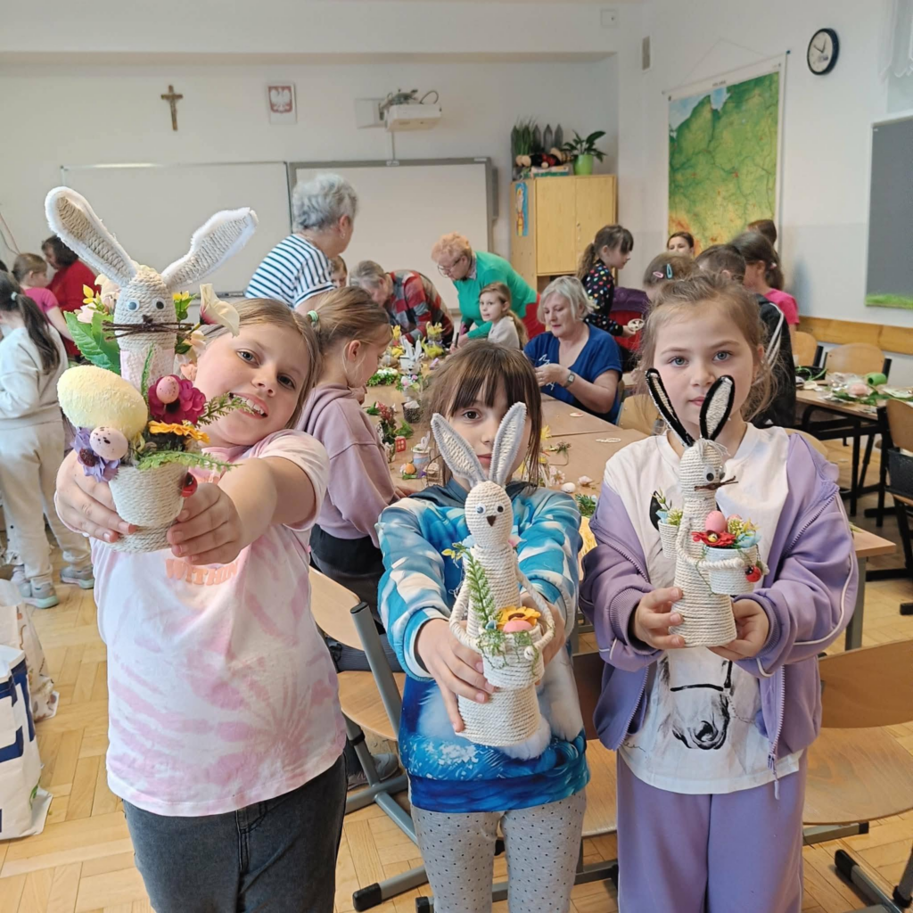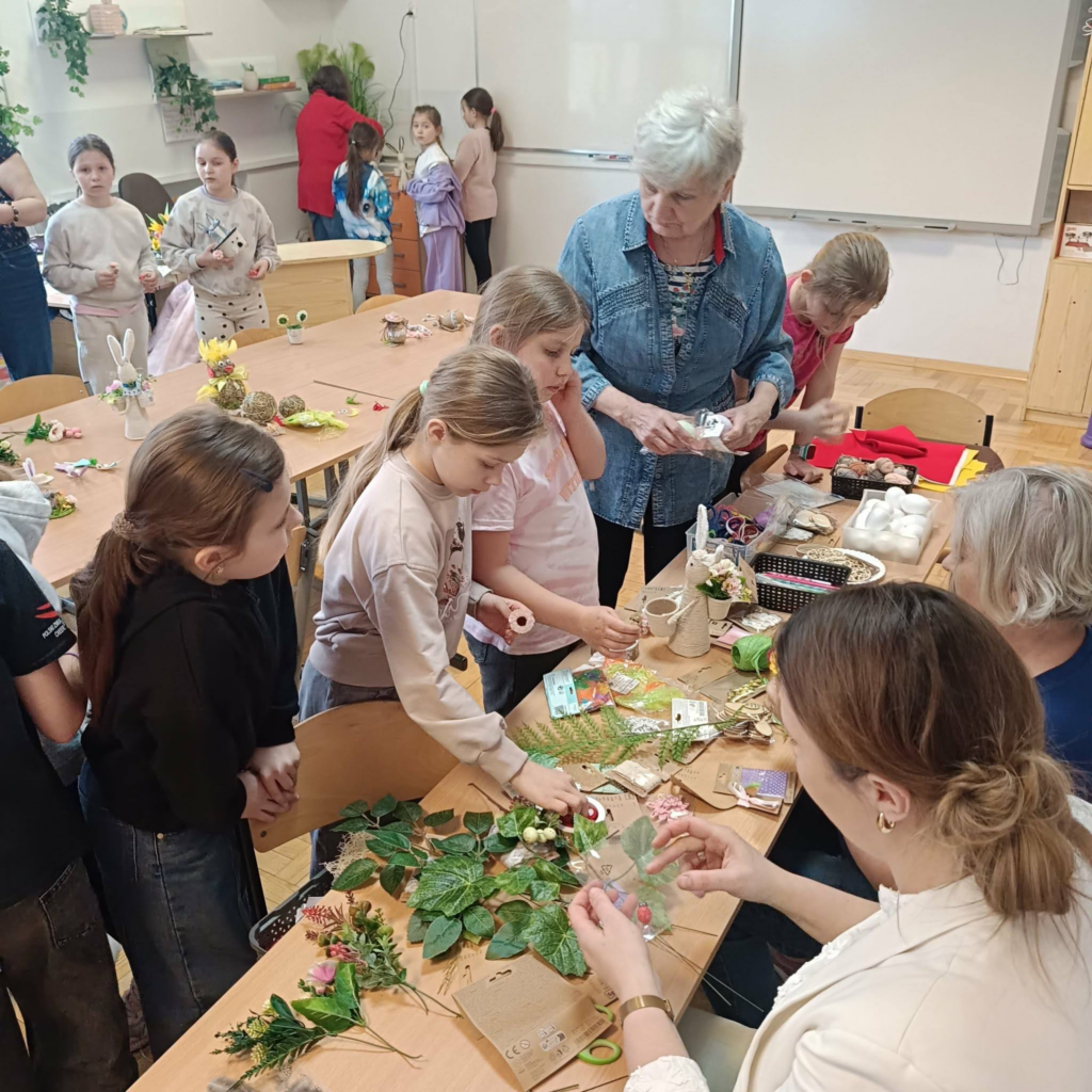 , wiosenno-świąteczne dekoracje. Panie Seniorki uwolniły prawdziwe pokłady kreatywności naszych uczniów